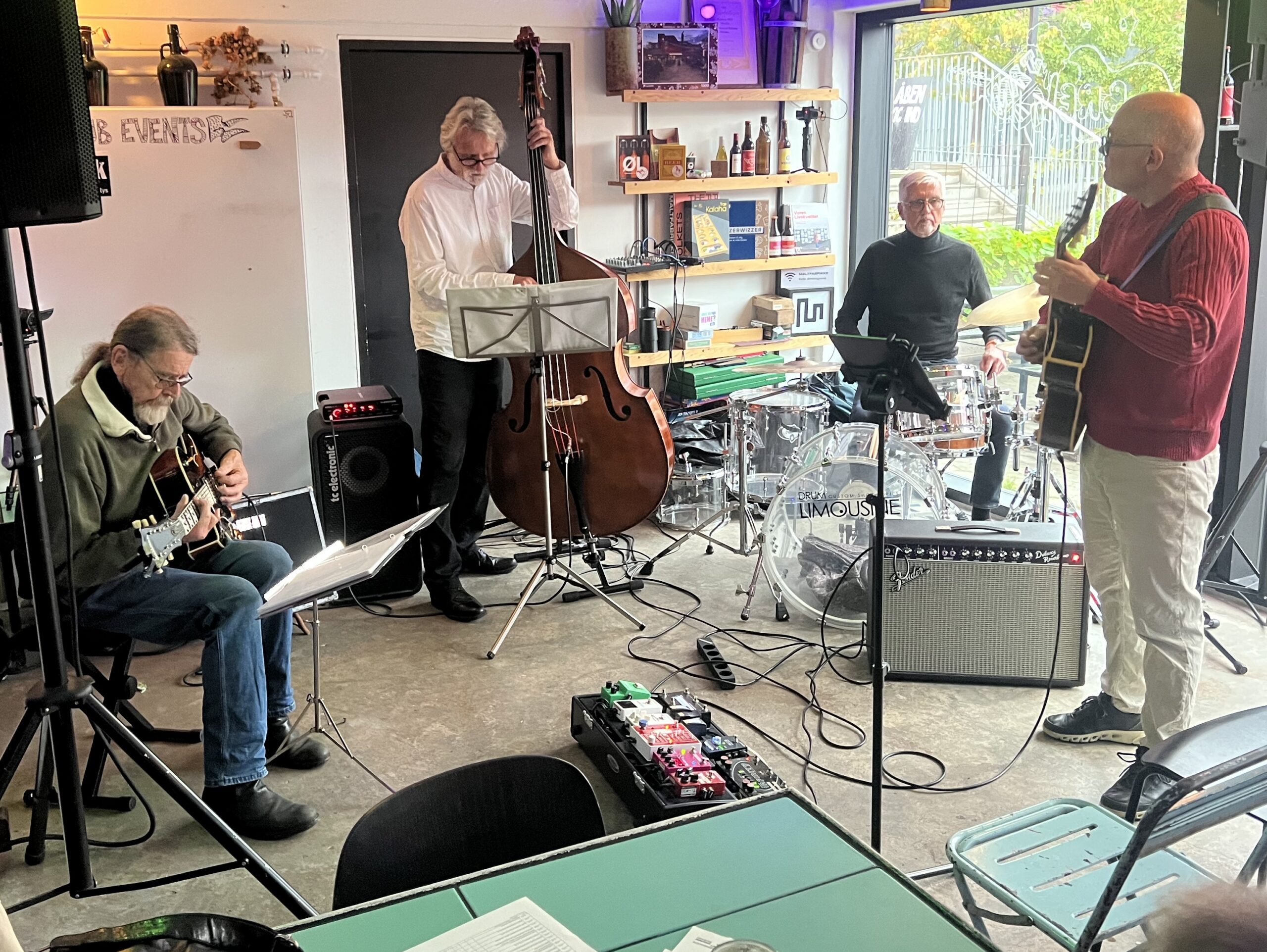 Jazz på første er: Niels U. Chr. på singleguitar, Jan Sv. på rytmeguitar, Stig A. på kontrabas og Jesper M. på trommer.